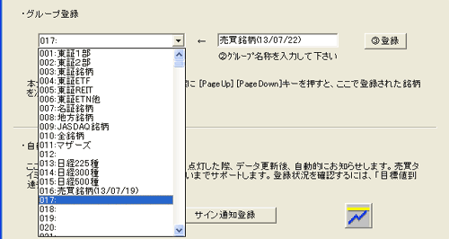 グループ登録が終わったら、目標値到達チェック画面で銘柄の管理を行いましょう。