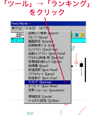 | ランキング機能とは、直近のデータを使用して、値上り率とか出来高急増などのある一定の条件で銘柄を並べ替えて表示する機能です。簡易的な銘柄検索機能としても使うことができます。 |
