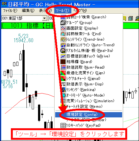 B「OK」を押し、チャート画面に移動します。 そこで、自動ページ送りをしたいグループを選択し「PageDown」キー+「SHIFT」キーを押します。 設定した切替え間隔秒数でチャートが捲られていきます。